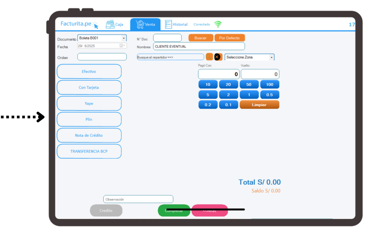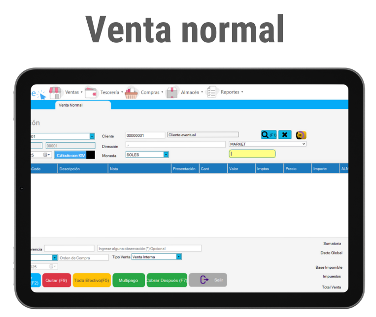 Venta tradicional y punto de venta (POS) en un solo lugar.